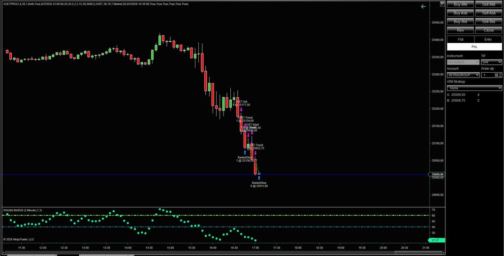 Xxe-7 Pro for NinjaTrader 8 is an advanced automated trading system designed for professional futures traders. It combines a powerful trend breakout core with dynamic hedging to capitalize on impulsive moves in high-liquidity markets, while intelligently managing risk through progressive trailing exits. Optimized for volatile sessions and macro events, it delivers consistent performance in NQ and YM futures.